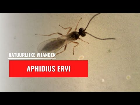 - Aphidius ervi: specializes in parasitizing the larger aphids such as: geranium aphid (Acyrthosiphon malvae), foxglove aphid (Aulacorthum solani), potato aphid (Macrosiphum euphorbiae), rose aphid (Macrosiphum rosea) and the yellow rose aphid (Rhobodium porosum).