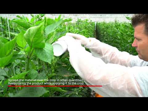 Shake out the material in small quantities over your crop or use a spreading system if desired. Avoid contact with heating pipes and CO2 pipes. The degree of application always depends on the pest pressure in the crop, so ask the product specialist for the correct dosage.